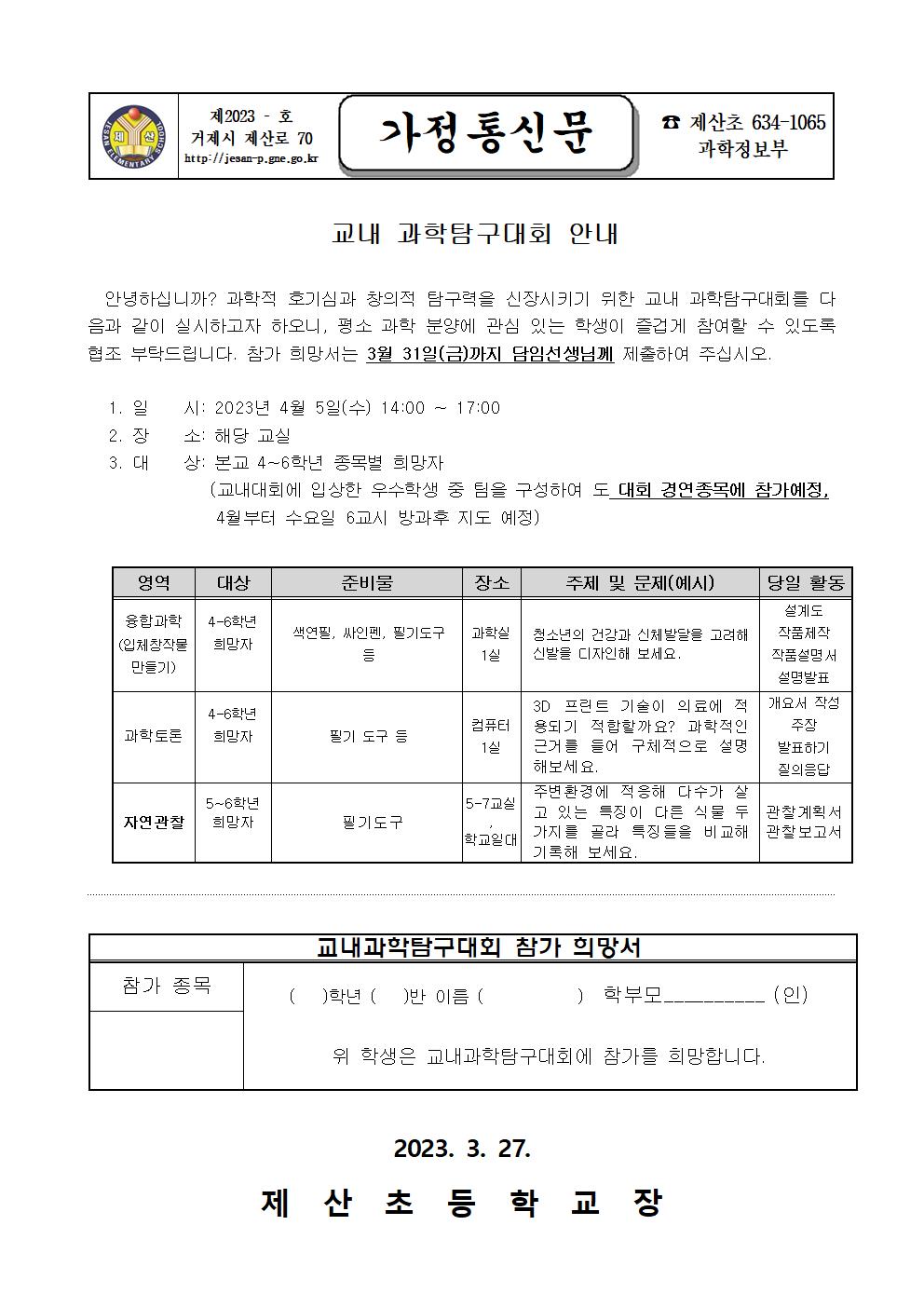 2023학년도 4학년 1학기 현장체험학습 경비 납부 안내