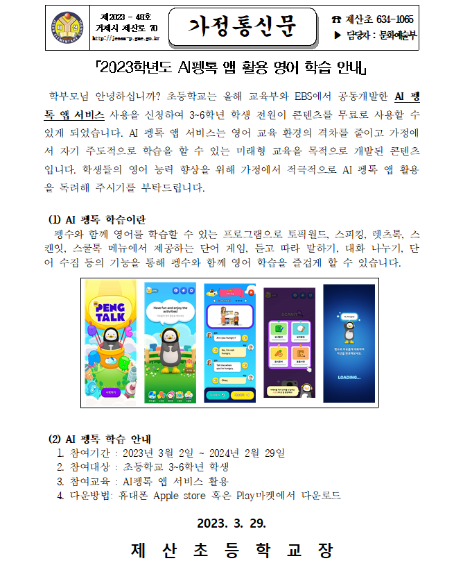 2023학년도 AI펭톡 앱 활용 영어 학습 안내