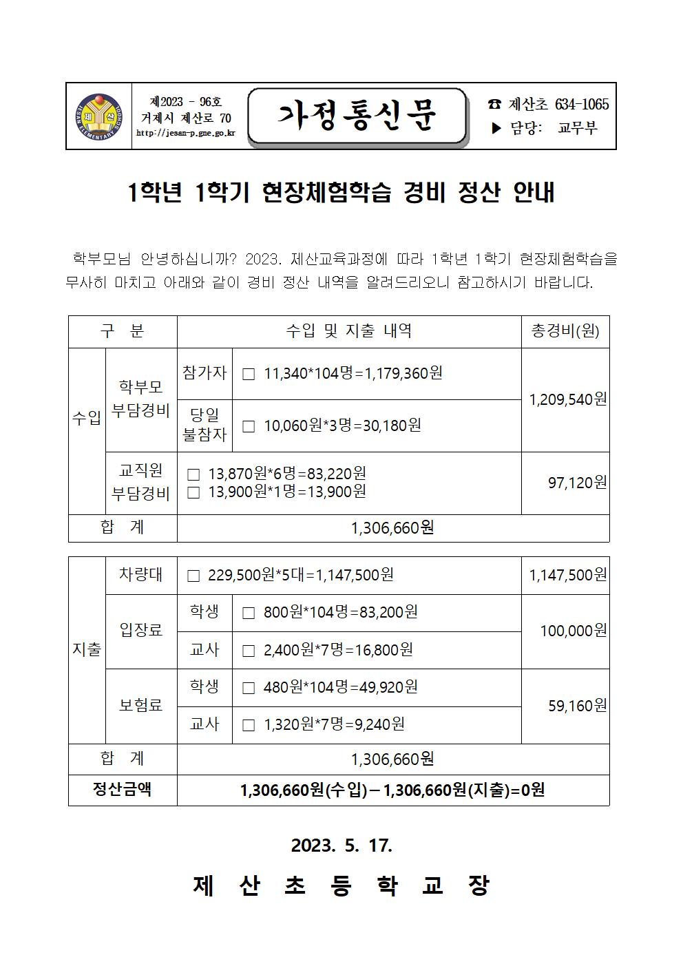 2023. 1학년 1학기 현장체험학습 경비 정산 안내.pdf