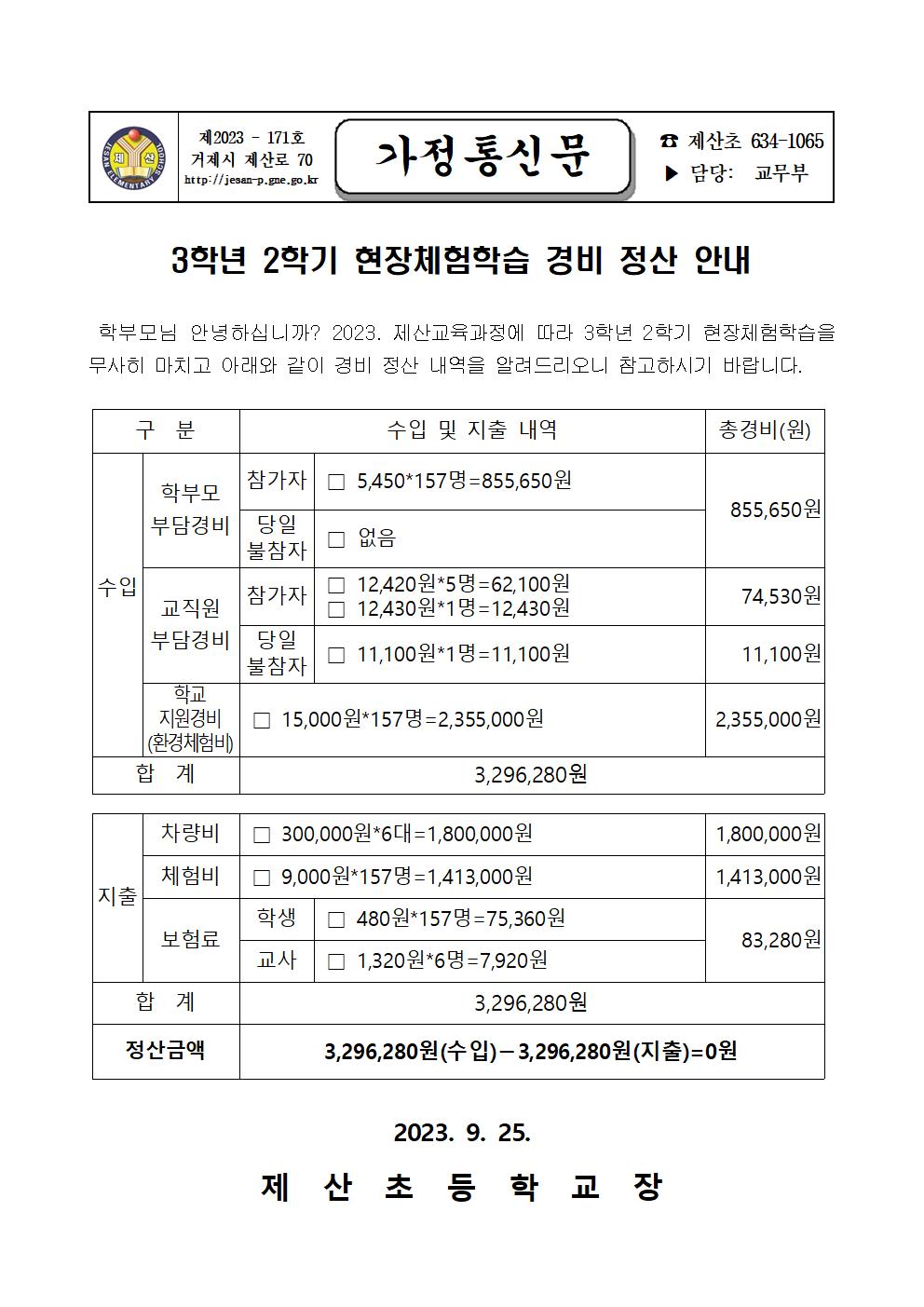 2023. 3학년 2학기 현장체험학습 경비 정산 안내.pdf