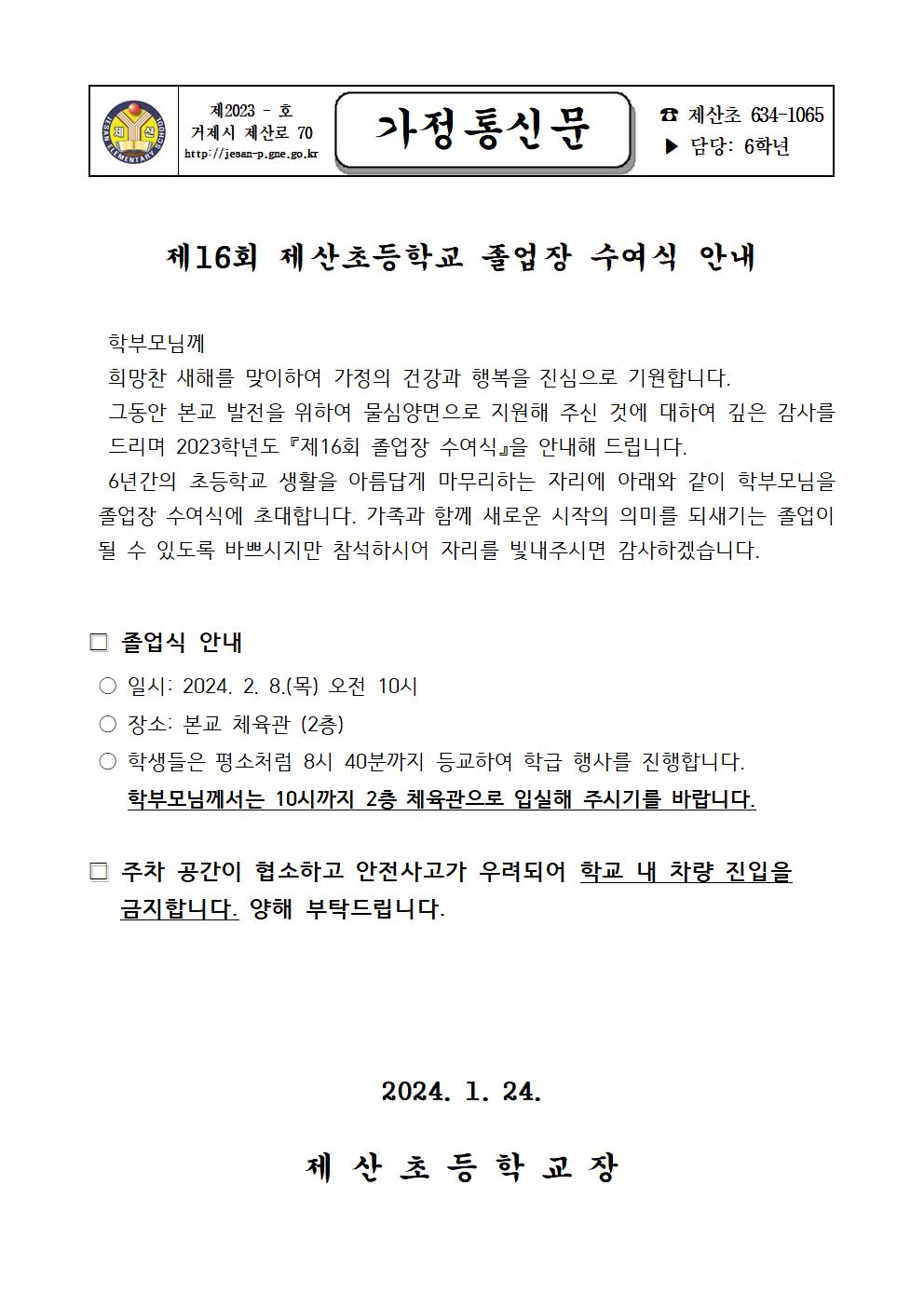 제16회 제산초등학교 졸업장 수여식 안내.hwp