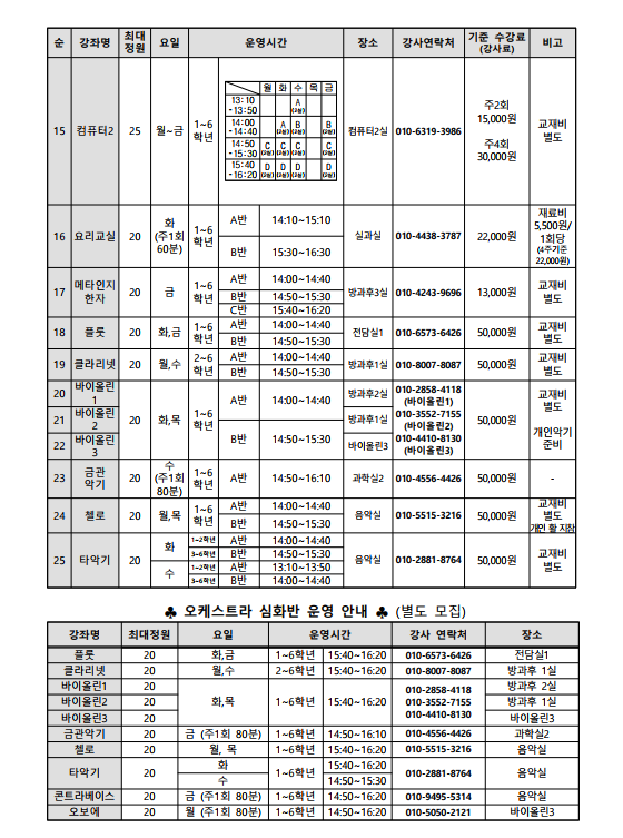 2024학년도 방과후후학교 프로그램 위탁 계약 해지 등에 따른 폐강 안내