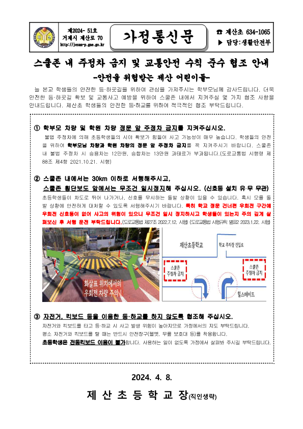 더욱 안전한 등·하굣길 확보 및 교통사고 예방을 위해 아래와 같은 몇 가지 협조 사항을 적극적으로 지켜주시길 부탁드립니다.