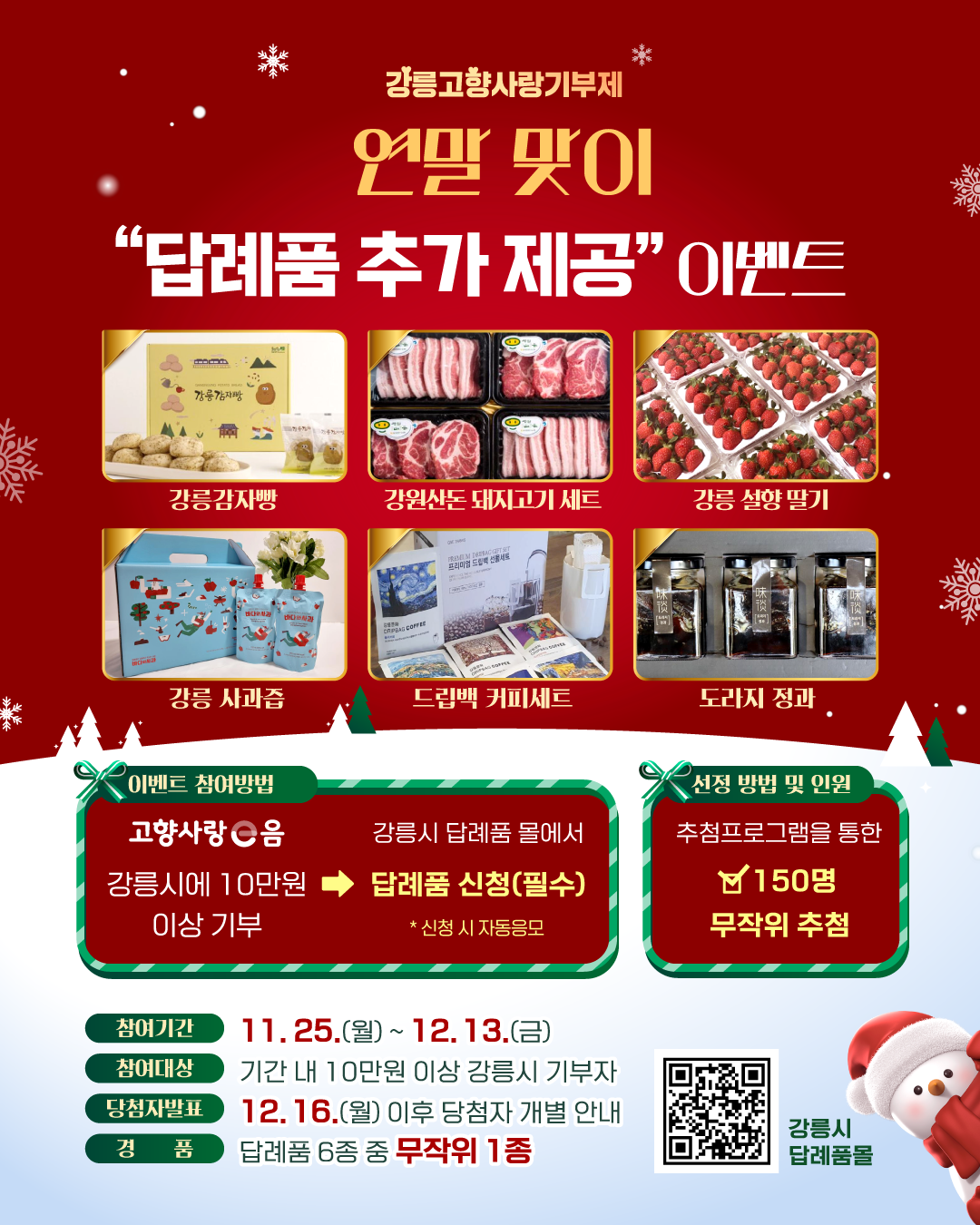 연말맞이 『강릉시 고향사랑기부제 답례품 추가 제공 이벤트』 안내