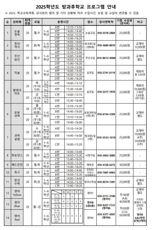 (수정) 2025학년도 방과후학교 운영 및 신청 안내