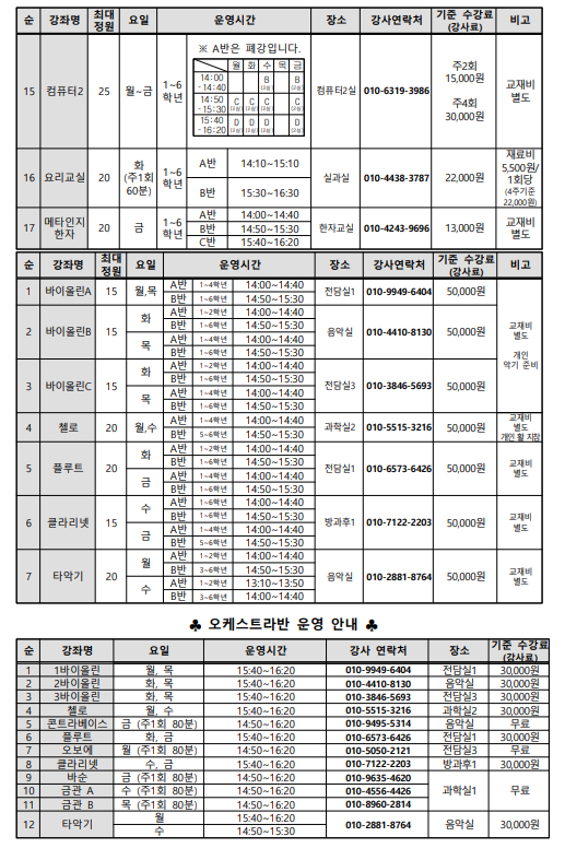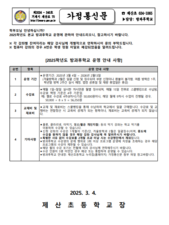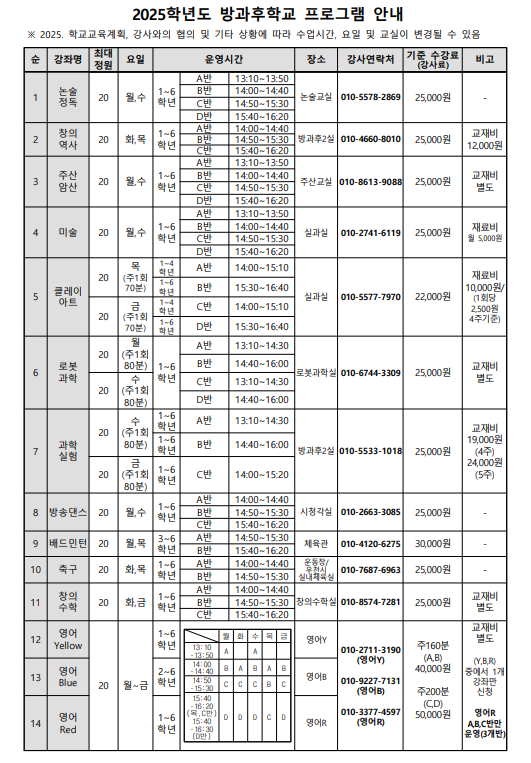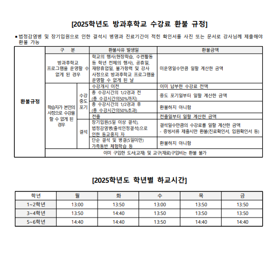 [최종수정]2025학년도 방과후학교 프로그램 및 환불규정 안내