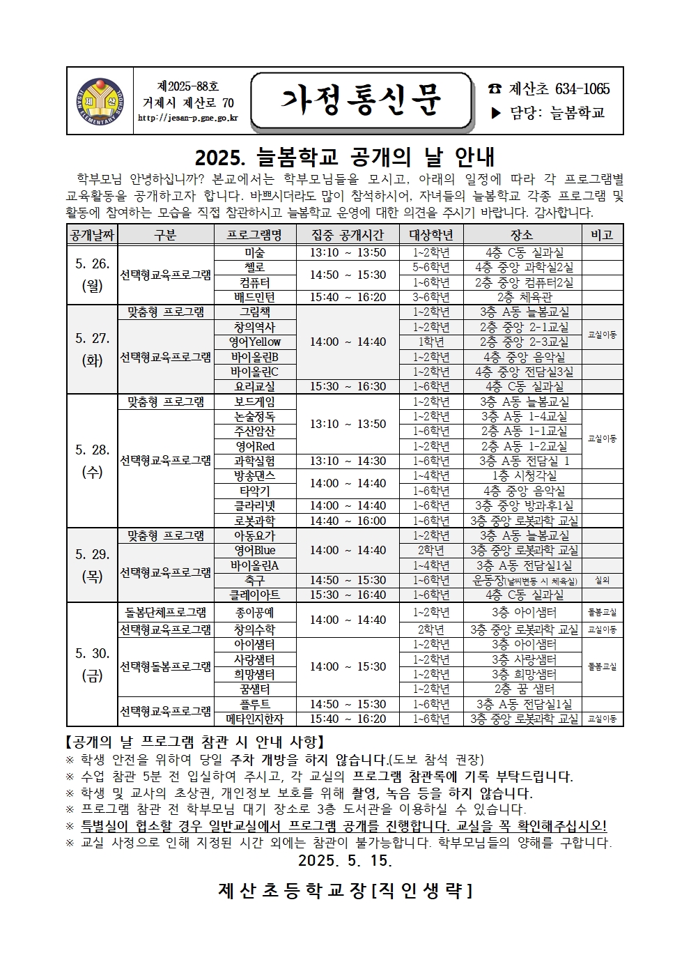 2025학년 늘봄학교 공개의 날 안내
