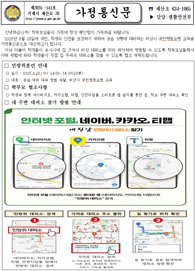 2025. 8월 민방위훈련 실시 및 내 주변 대피소 찾기 방법 안내.hwp