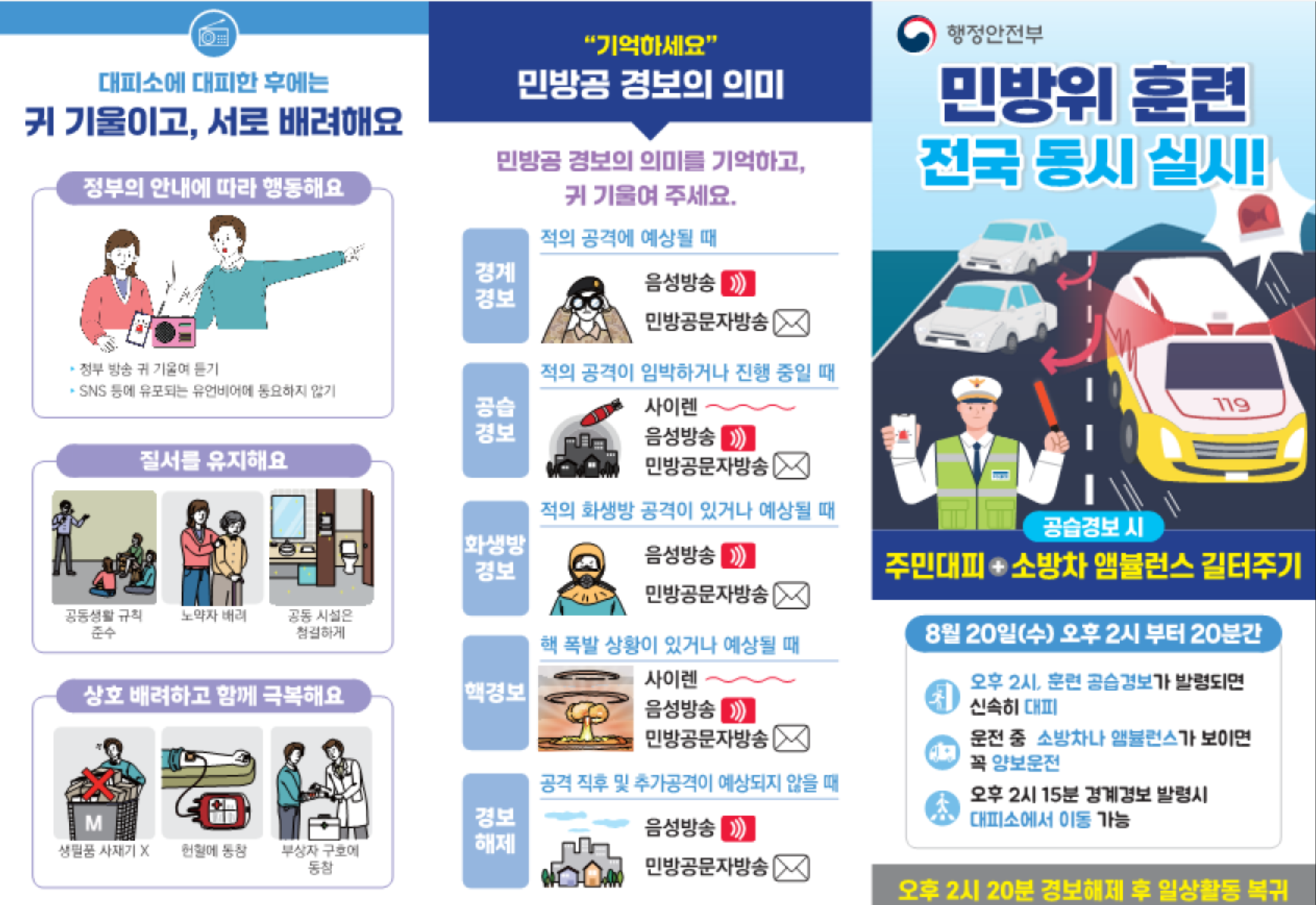 2025년 8월 20일에 시행되는 민방위 훈련 안내장입니다.