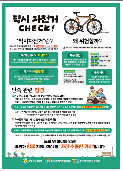 제동장치 없는 '픽시자전거' 교통사고 예방 안내
