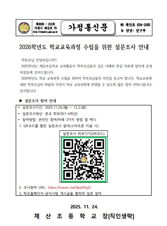 [2026학년도 학교교육과정 수립을 위한 설문조사 안내]